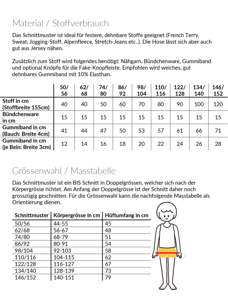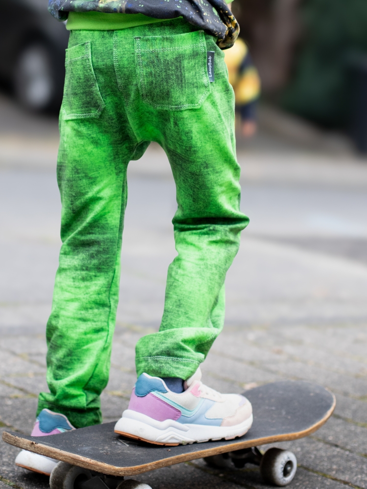 - Stoffempfehlung: French Terry, Sweat, Jeans-Jersey & Stretch-Jeans (auch Upcycling)