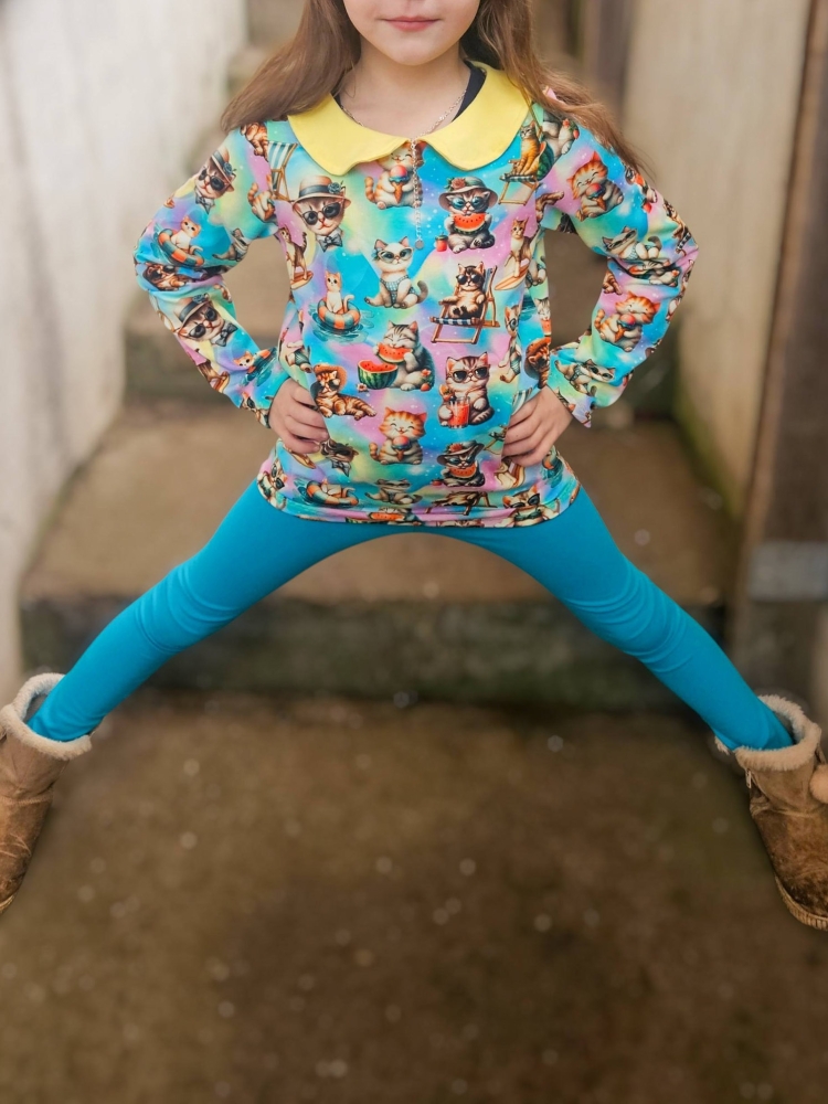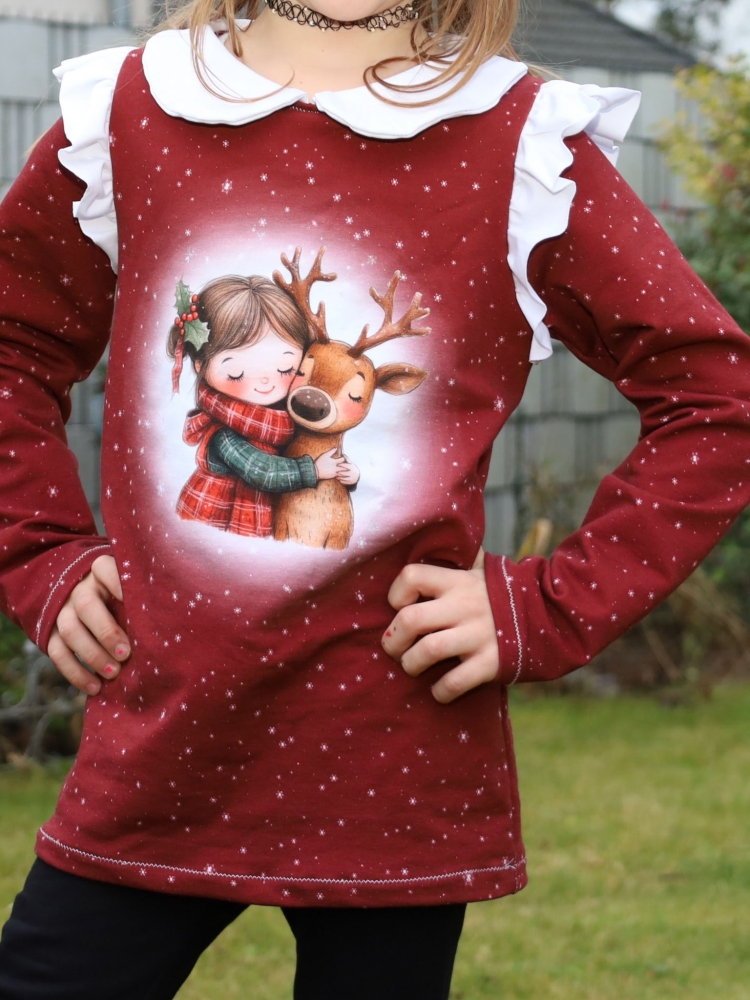 Der Mädchentraum ist ein schnell genähtes Shirt mit verspielten Highlights wie der Bubikragen oder die Rüschenärmel. Genäht mit einem Bubikragen schaut das Shirt toll unter einem ärmellosen Kleid/Tunika aus. Aber auch als schlichtes Basic Shirt ist der Mädchentraum eine tolle Ergänzung für den Kleiderschrank. Der Ausschnitt kann mit Bündchen, Beleg oder Einfassband genäht werden – so bekommt das Shirt immer wieder einen neuen Look!