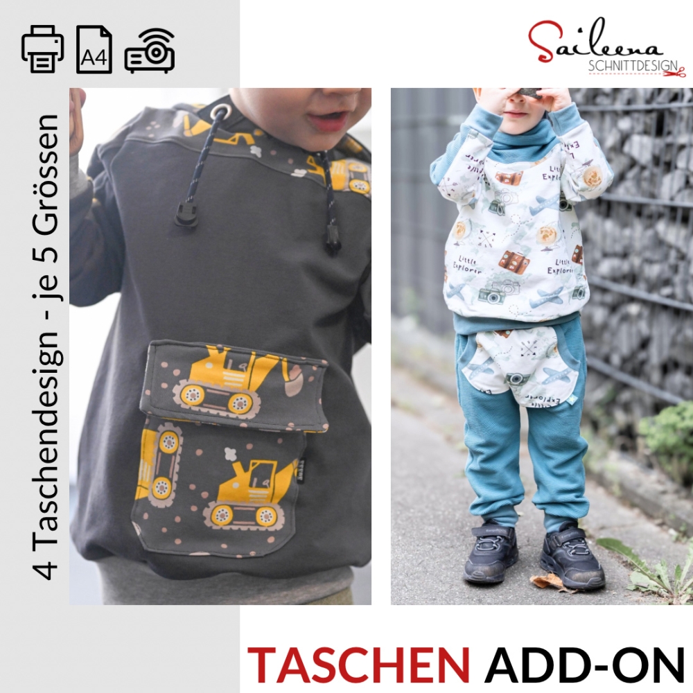 Das Taschen Add-on beinhaltet 4 verschiedene Taschendesigns in je 5 Grössen. Die Taschen werden aufgenäht und lassen sich zu all meinen eBooks kombinieren.